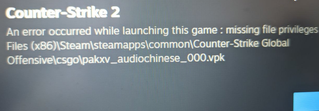 ❓: При запуске CS2 через панель появляется ошибка "An error occured while launching this game: missing file....".